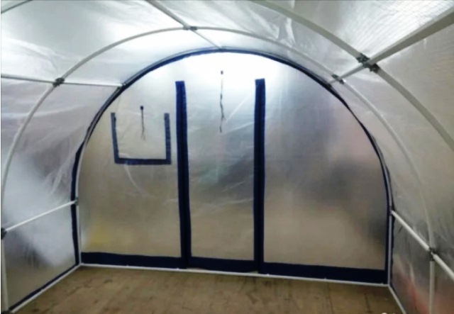 Две двери на молнии, две форточки на липучках для вентиляции, закрываются герметично, сохраняют тепло в теплице.