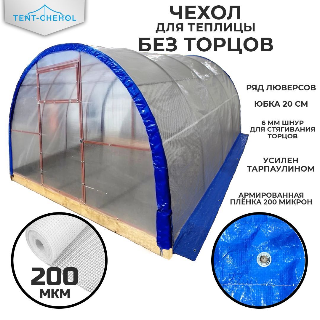 Чехол для теплицы без торцов из армированной пленки (полог, тент) 500х300х210 см (ДхШхВ)Полог из армированной пленки - отличное решение, если у вас торцы обшиты поликарбонатом, и вы хотите сэкономить.