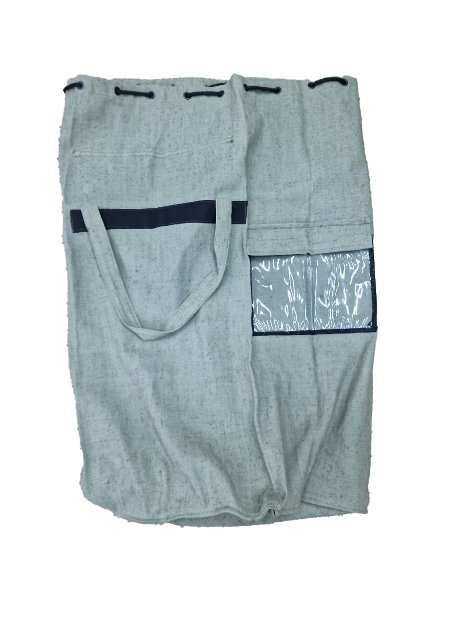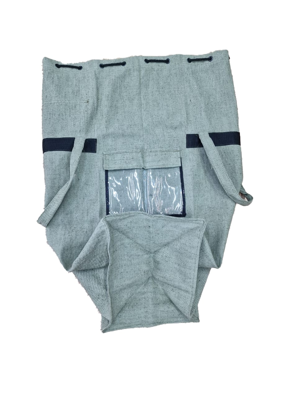 - внешний прозрачный карман с клапаном для вложения до 10 листов описи формата А5 альбомной ориентации на боковине мешка между ручками для переноски.