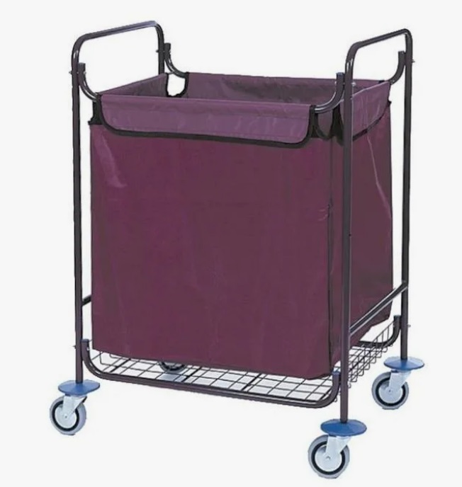 Мешок крепится к тележки с помощью клапанов на липучках и кнопках, стропах с полукольцами.
