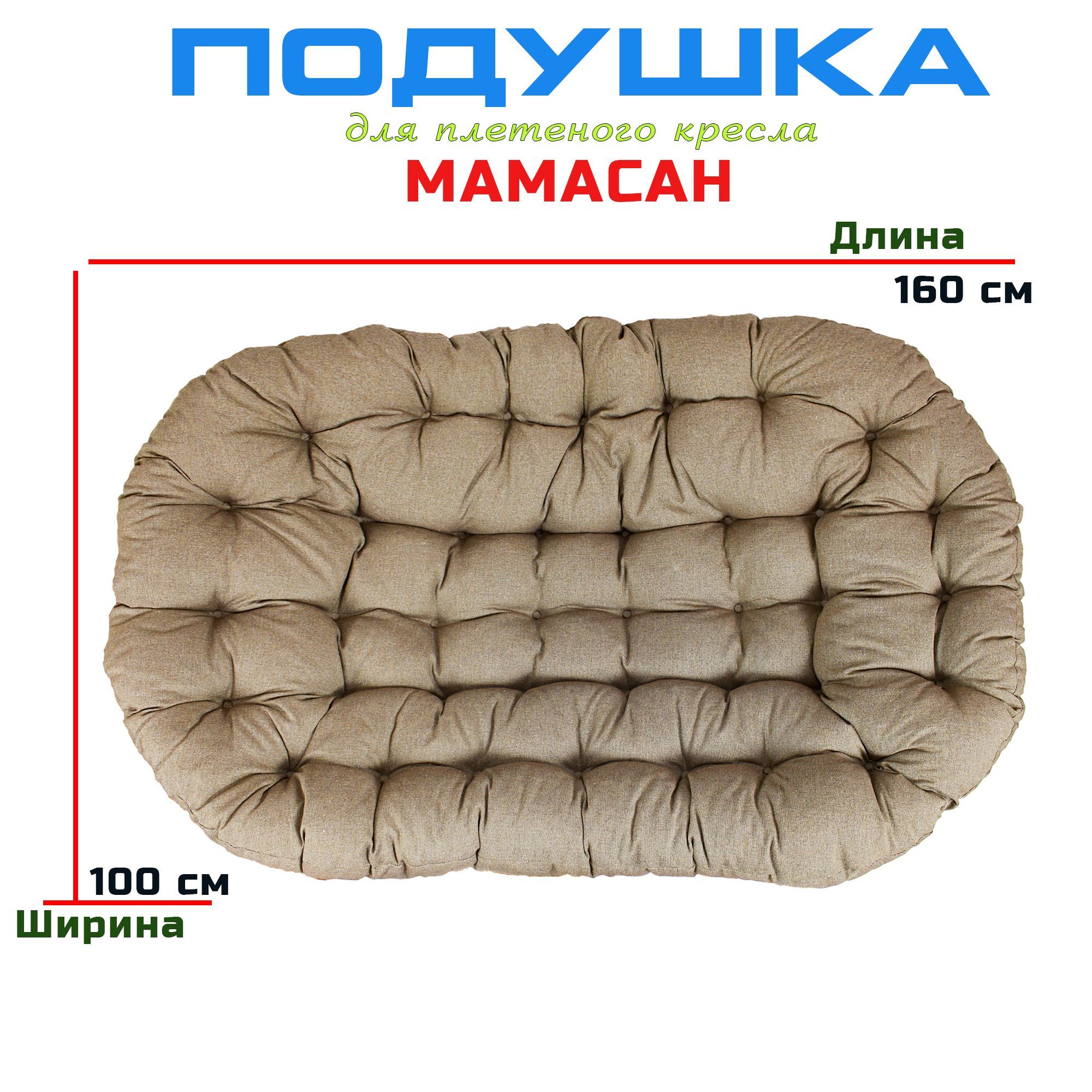 Краткое описание «Подушка для дивана Мамасан, 160х100 см, коричневая рогожка»