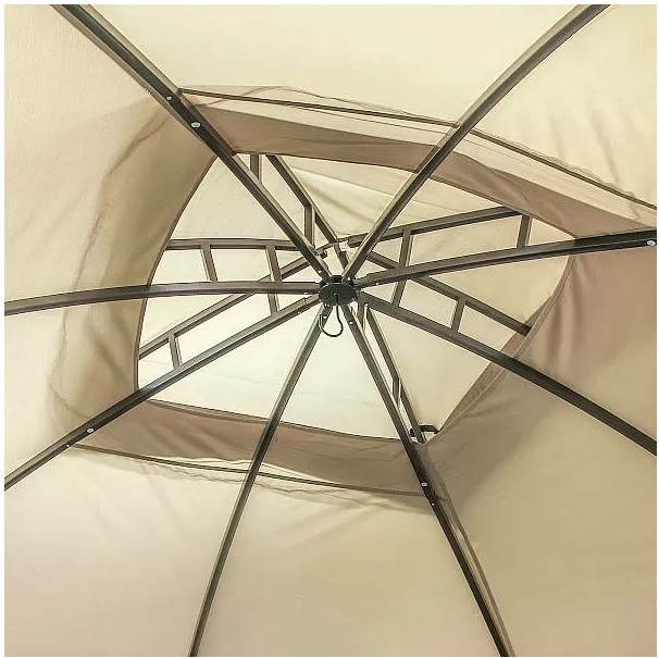 У нас вы можете приобрести крышу-тент, предназначенную для шатра ganghao. Данная крыша выполнена в бежевом цвете, она подойдёт для размеров шатра с длиной 365 см, шириной 300 см, высотой 295 см. Изготовлена данная крыша из полиэстера. У крыши есть вентиляционное отверстие. Такая крыша защитит вас от солнечных лучей и осадков.